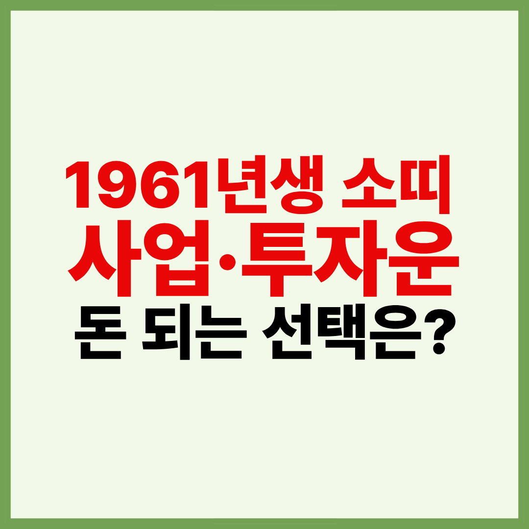 특히 사업운과 투자운은 재물운과 직접 연결되기 때문에 타이밍과 판단력이 무엇보다 중요합니다. 이번 글에서는 1961년생 소띠 2026년 사업운, 투자운, 돈 되는 시기, 주의해야 할 선택까지 한 번에 정리해 드립니다.